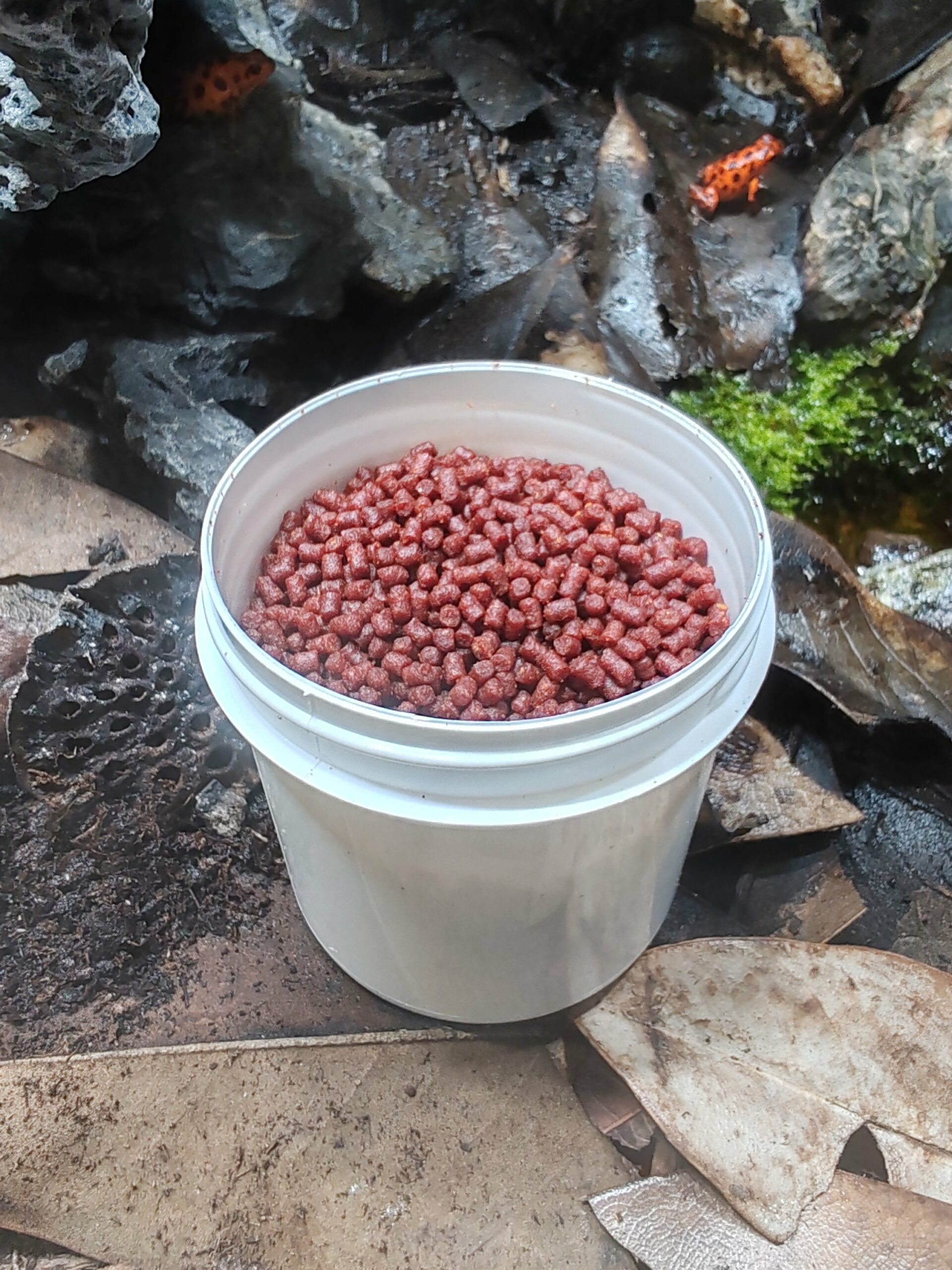 Ce produit contient tous les nutriments nécessaires à la croissance saine des larves. Nous utilisons cet aliment pour larves depuis de nombreuses années avec d'excellents résultats, produisant des générations de grenouilles robustes et en pleine santé.