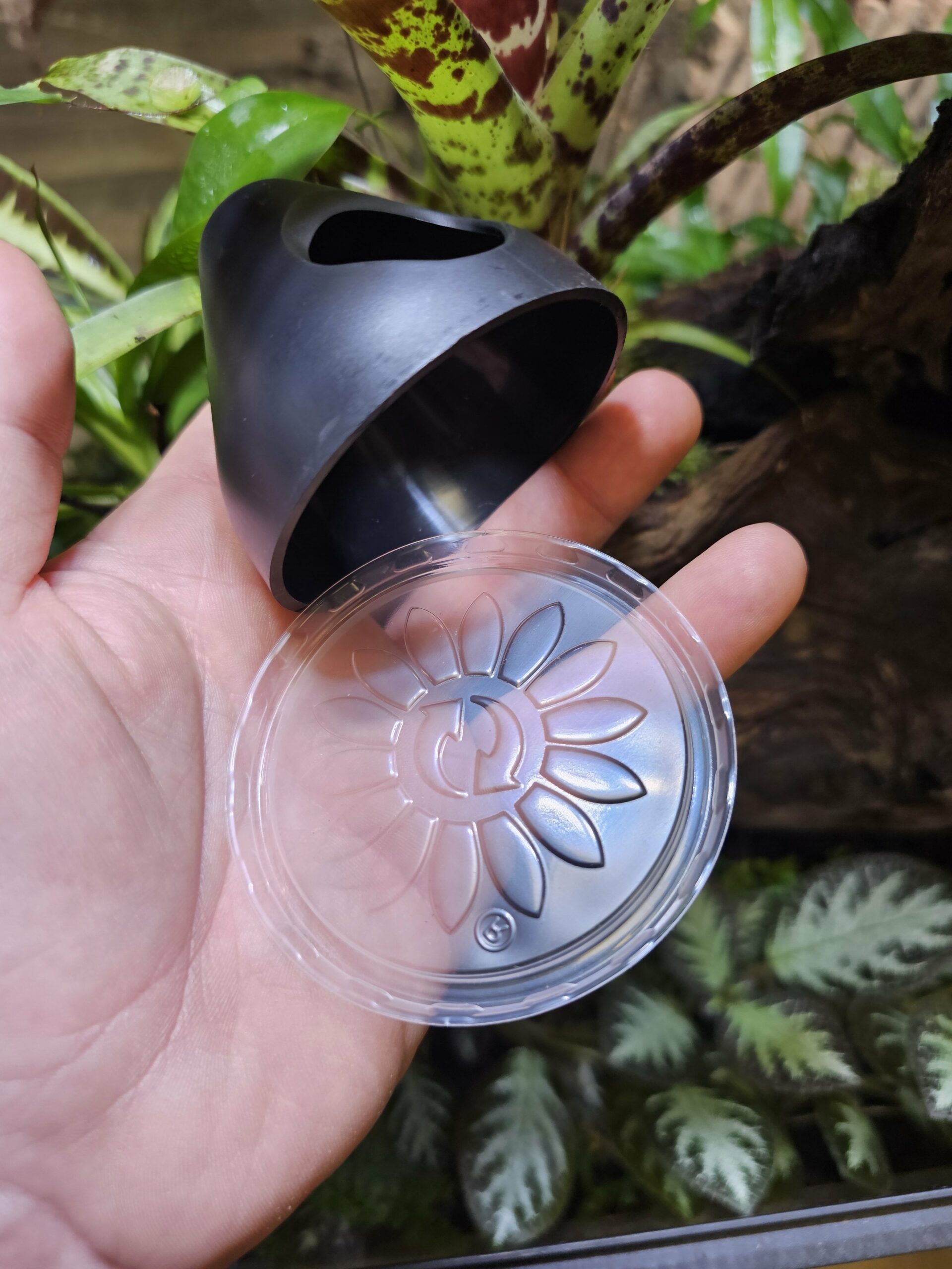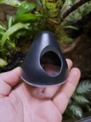 Hutte de ponte idéale pour les dendrobates. Il est possible de recouvrir la hutte de silicone et de la saupoudrer de poudre de BTS, xaxim, fibre de coco… afin de la dissimuler plus facilement dans le terrarium.