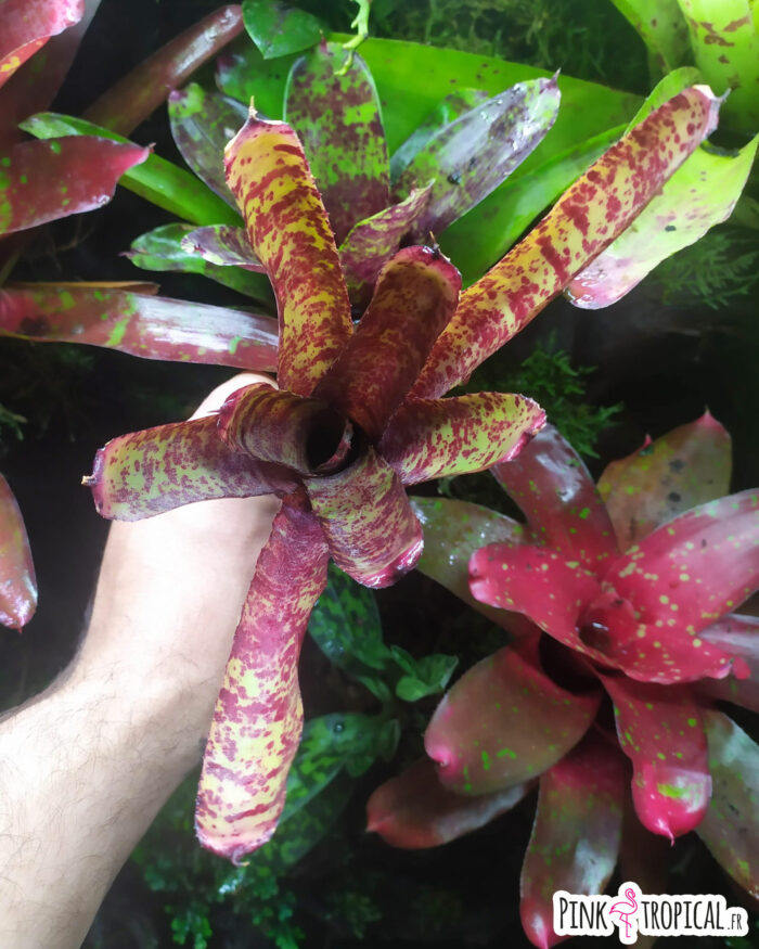Les Neoregelia sont de superbes plantes tropicales avec un rendu visuel unique. Tu peux les maintenir en terrarium tropical, au-dessus d’un aquarium ou même sur le rebord d’une fenêtre exposé au soleil.