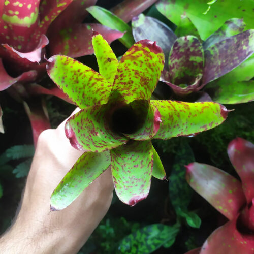 Les Neoregelia sont de superbes plantes tropicales avec un rendu visuel unique. Tu peux les maintenir en terrarium tropical, au-dessus d’un aquarium ou même sur le rebord d’une fenêtre exposé au soleil.