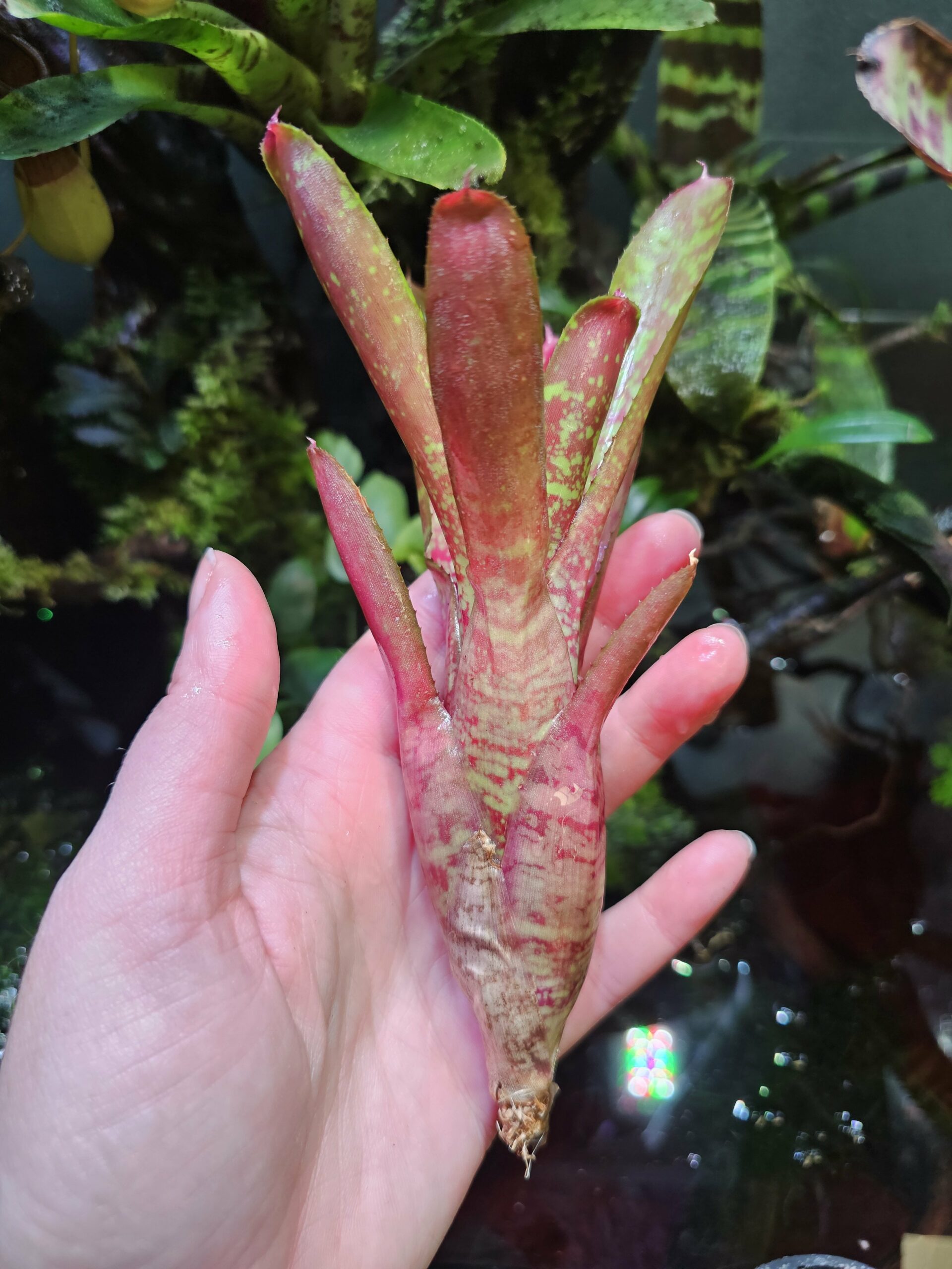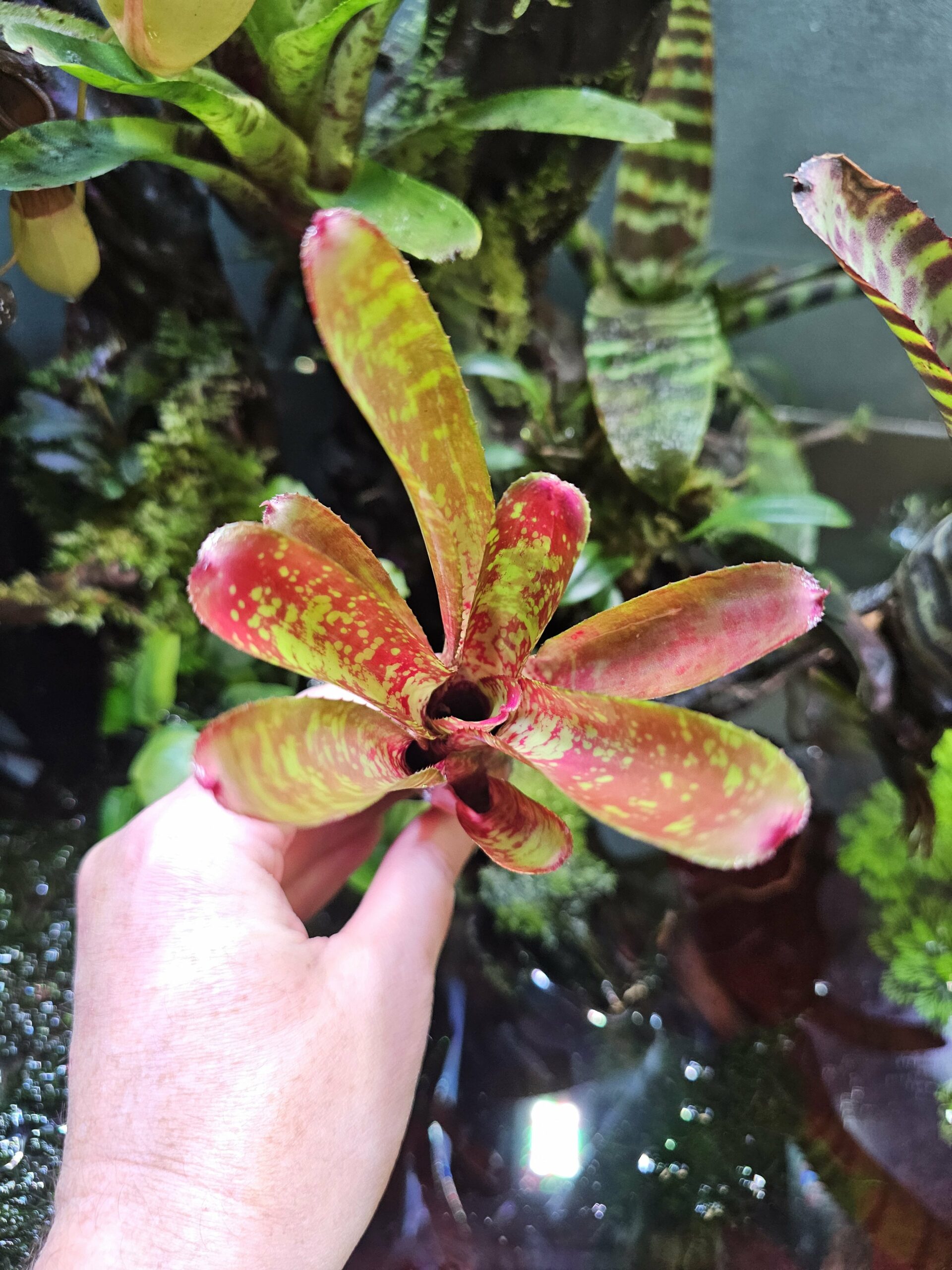 Les Neoregelia sont de superbes plantes tropicales avec un rendu visuel unique. Tu peux les maintenir en terrarium tropical, au-dessus d’un aquarium ou même sur le rebord d’une fenêtre exposé au soleil.