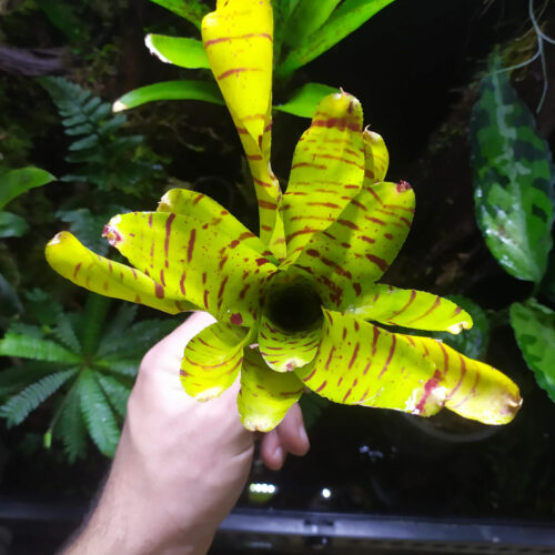 Les Neoregelia sont de superbes plantes tropicales avec un rendu visuel unique. Tu peux les maintenir en terrarium tropical, au-dessus d’un aquarium ou même sur le rebord d’une fenêtre exposé au soleil.