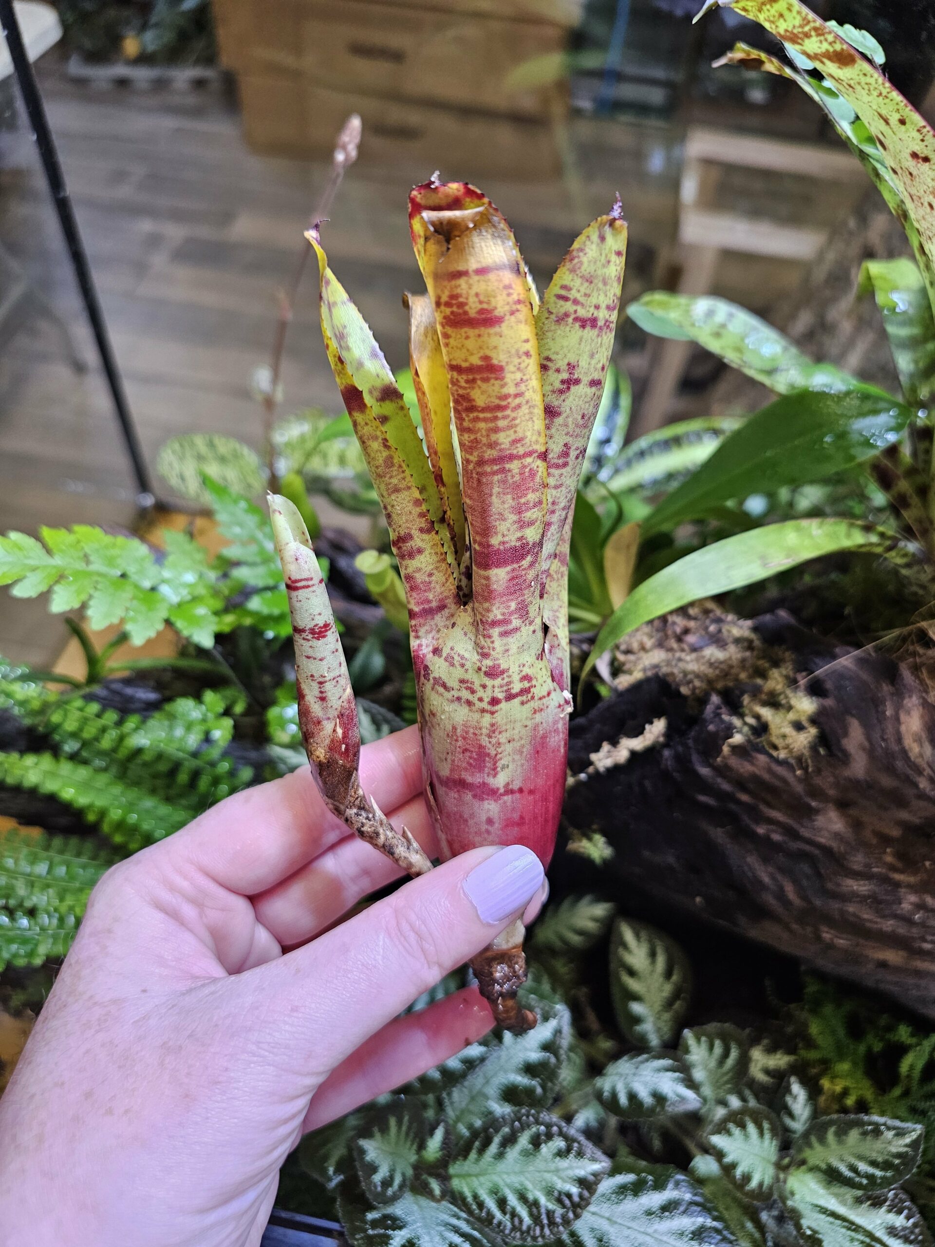 - 💦 Arrosage : Maintenir de l’eau propre dans la rosette centrale et humidifier régulièrement le substrat