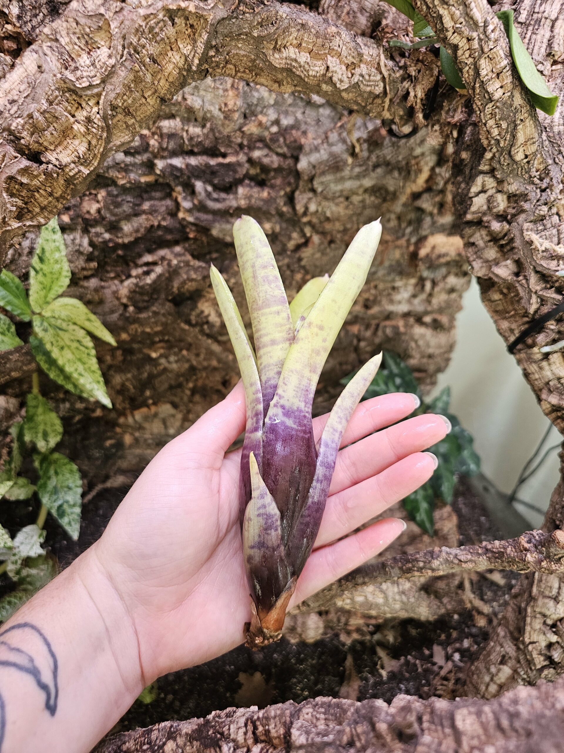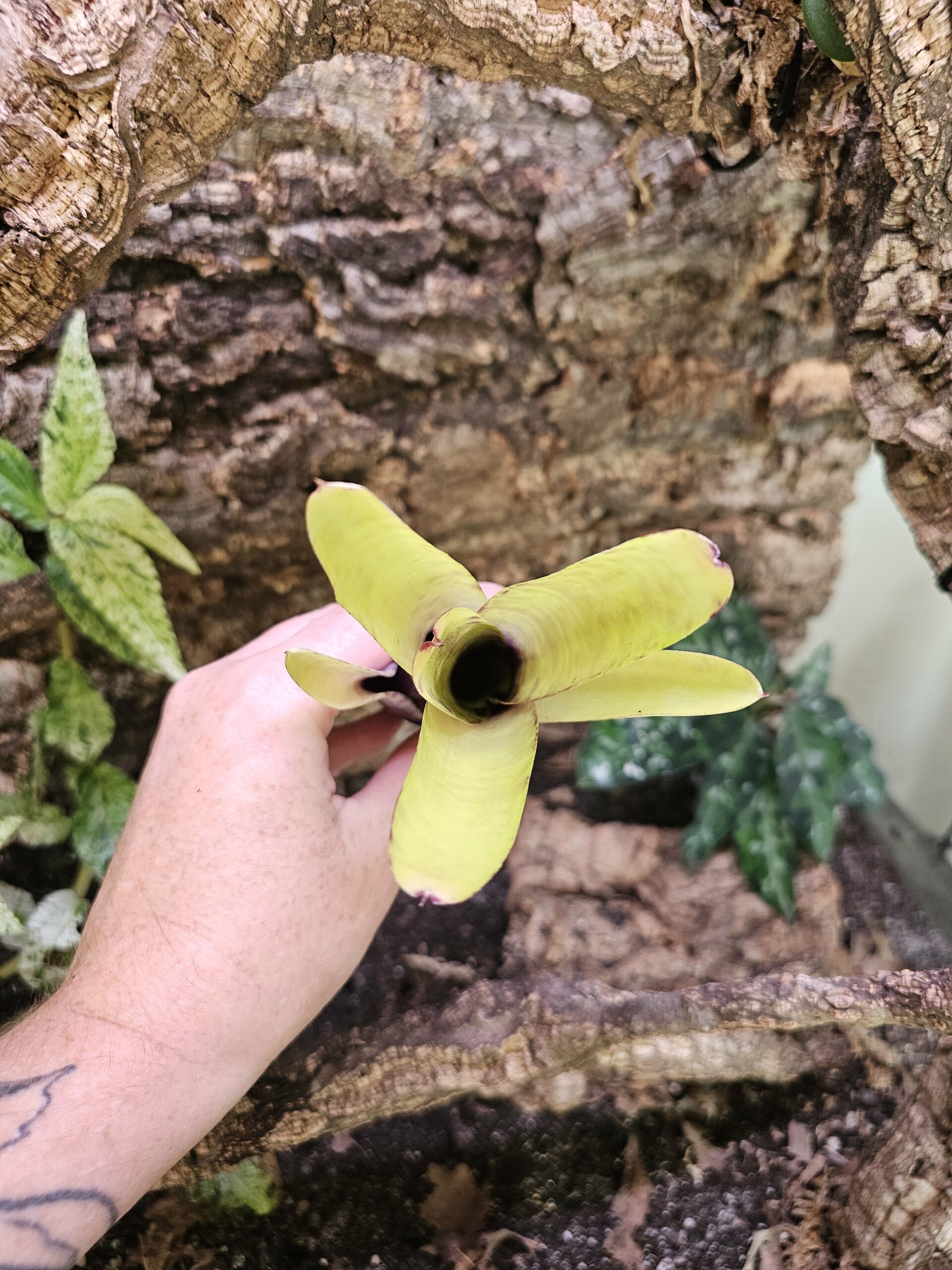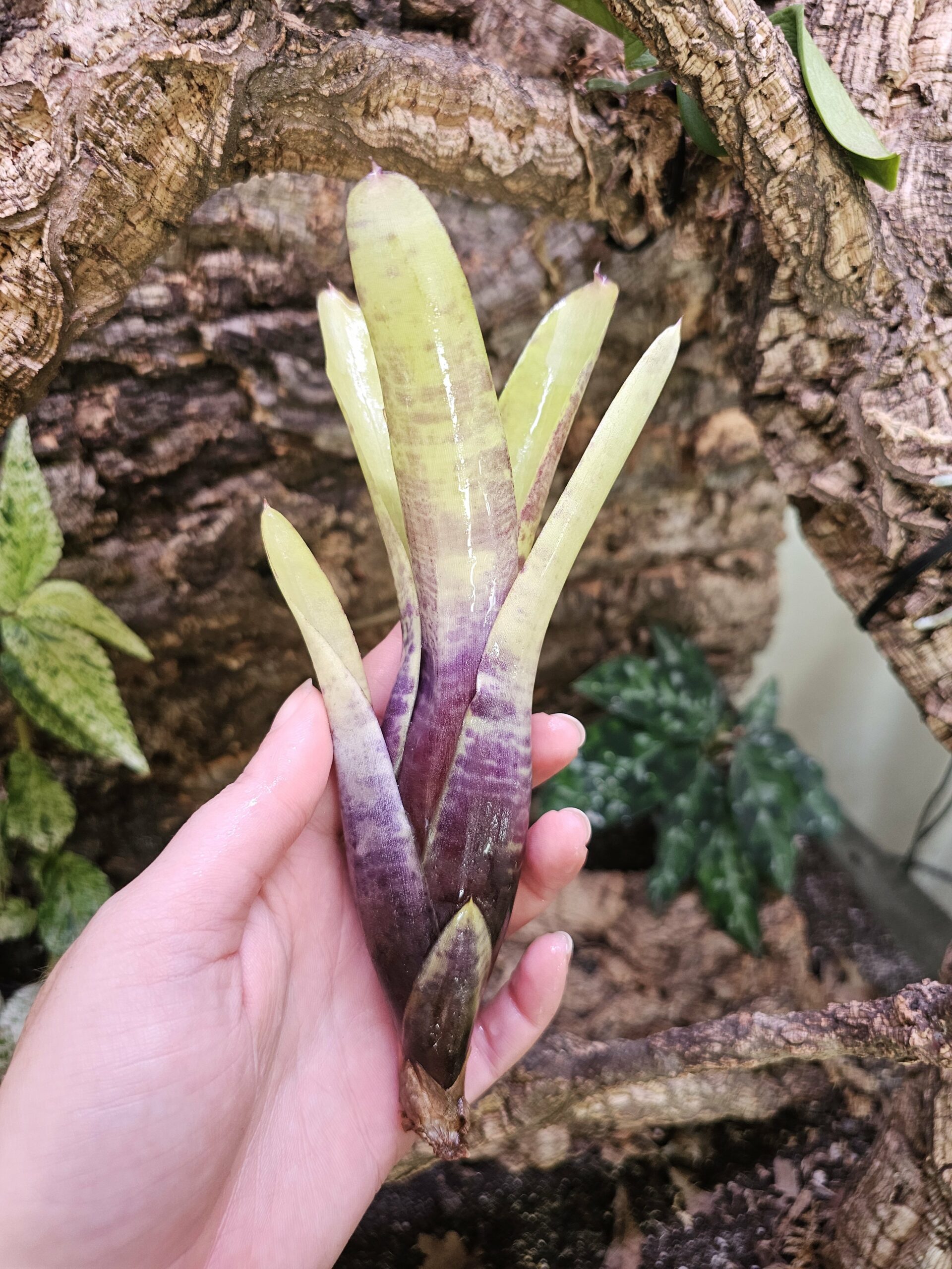 - 💦 Arrosage : Maintenir de l’eau propre dans la rosette centrale et humidifier régulièrement le substrat