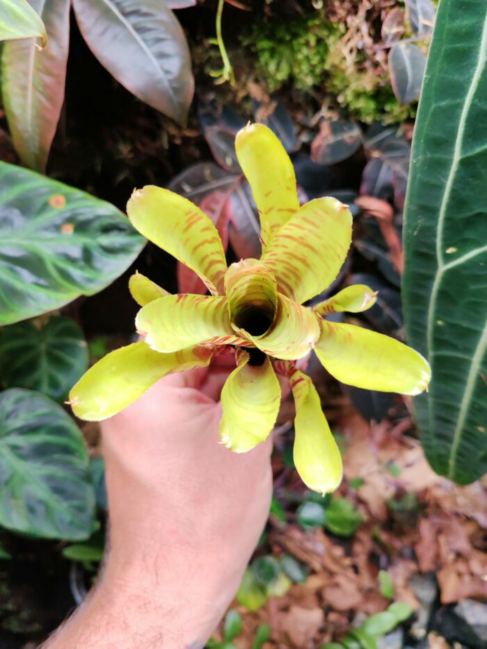 Les Neoregelia sont de superbes plantes tropicales avec un rendu visuel unique. Tu peux les maintenir en terrarium tropical, au-dessus d’un aquarium ou même sur le rebord d’une fenêtre exposé au soleil.