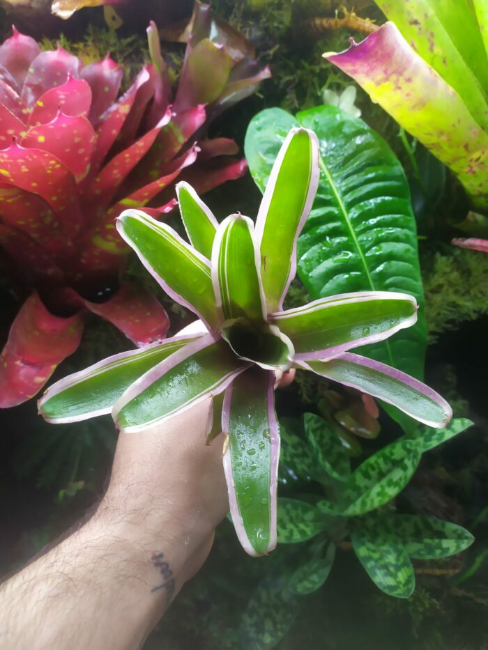 Les Neoregelia sont de superbes plantes tropicales avec un rendu visuel unique. Tu peux les maintenir en terrarium tropical, au-dessus d’un aquarium ou même sur le rebord d’une fenêtre exposé au soleil.