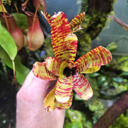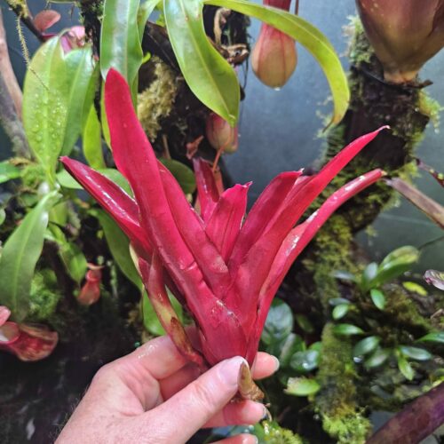 - 💦 Arrosage : Maintenir de l’eau propre dans la rosette centrale et humidifier régulièrement le substrat