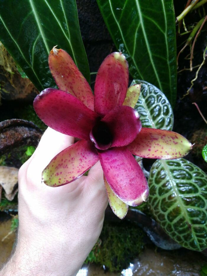 - 💦 Arrosage : Maintenir de l’eau propre dans la rosette centrale et humidifier régulièrement le substrat