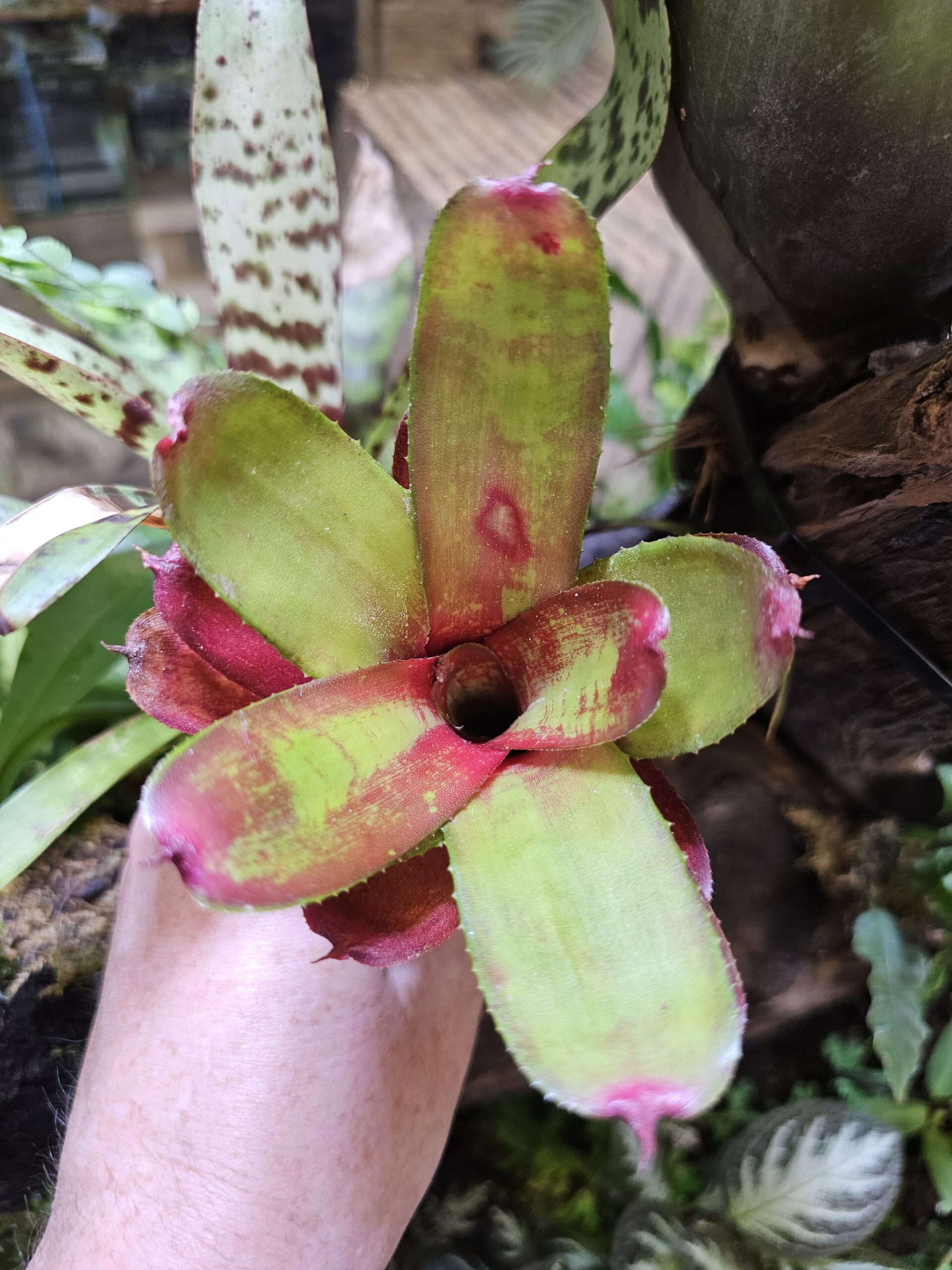 • 💦 Arrosage : Maintenir de l’eau propre dans la rosette centrale et humidifier régulièrement le substrat