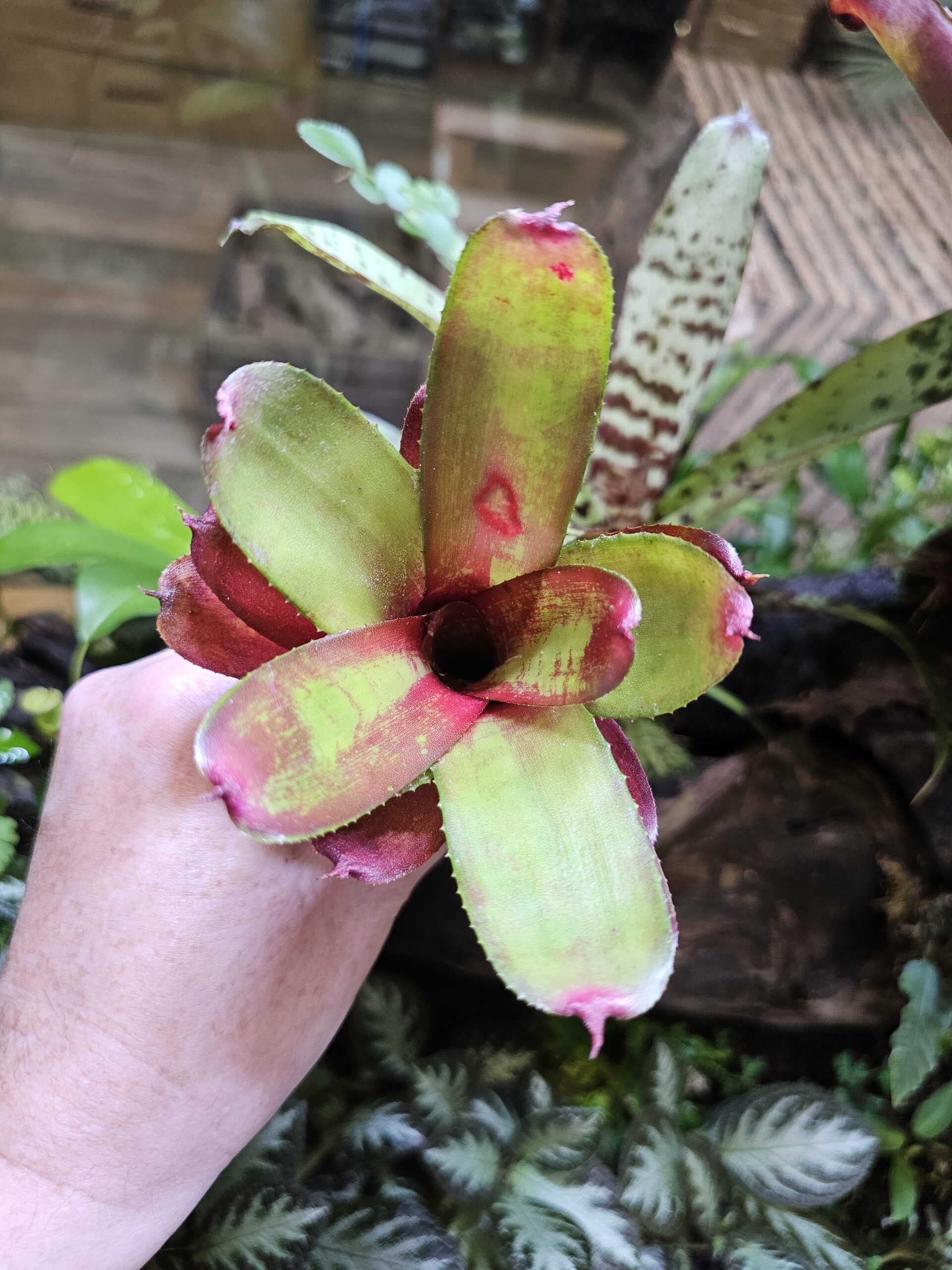 Les Neoregelia sont de superbes plantes tropicales avec un rendu visuel unique. Tu peux les maintenir en terrarium tropical, au-dessus d’un aquarium ou même sur le rebord d’une fenêtre exposé au soleil.