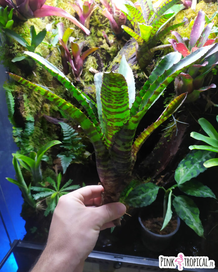 Les Neoregelia sont de superbes plantes tropicales avec un rendu visuel unique. Tu peux les maintenir en terrarium tropical, au-dessus d’un aquarium ou même sur le rebord d’une fenêtre exposé au soleil.