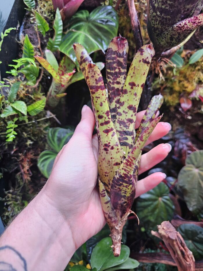 - 💦 Arrosage : Maintenir de l’eau propre dans la rosette centrale et humidifier régulièrement le substrat