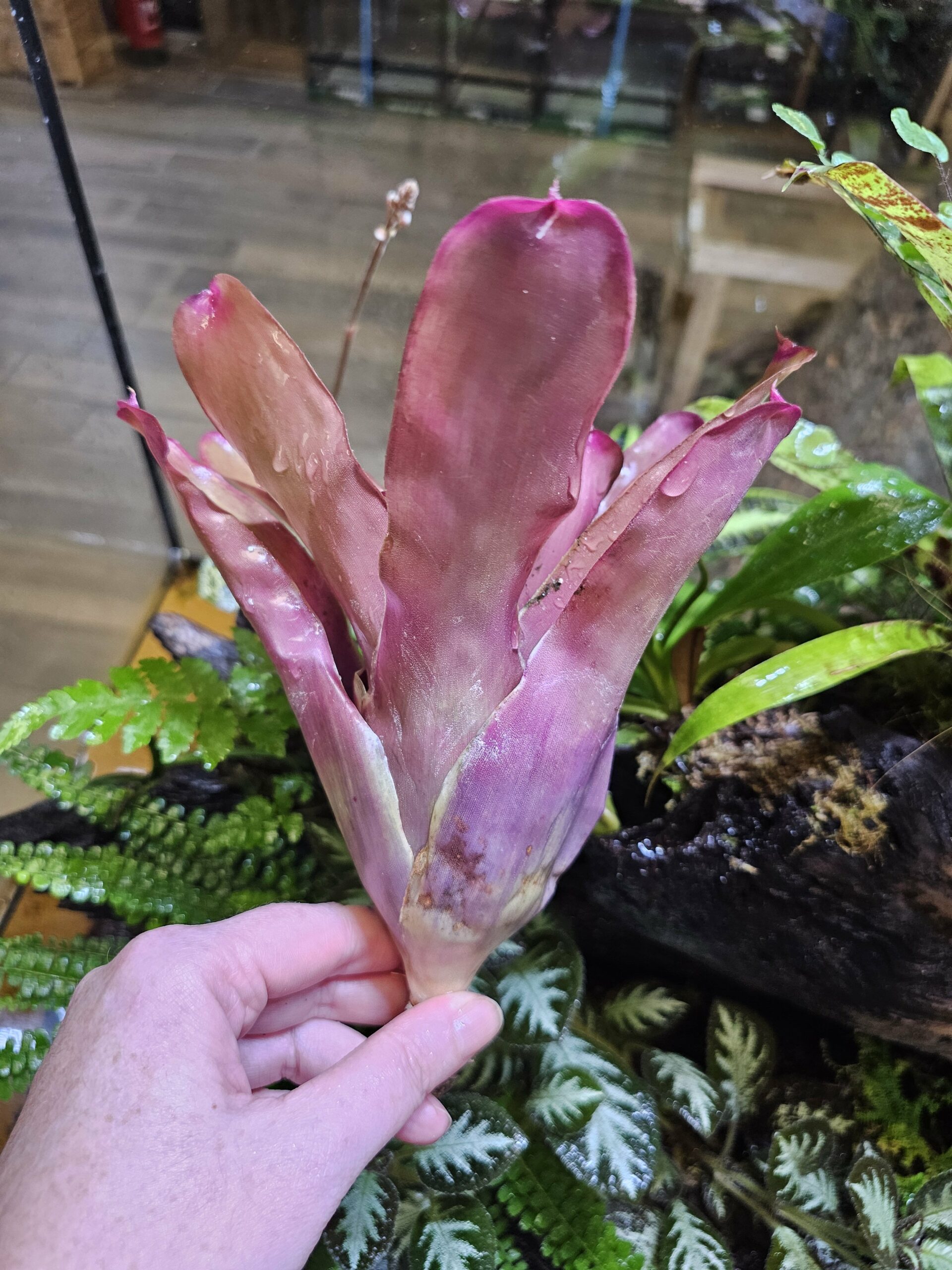 - 💦 Arrosage : Maintenir de l’eau propre dans la rosette centrale et humidifier régulièrement le substrat