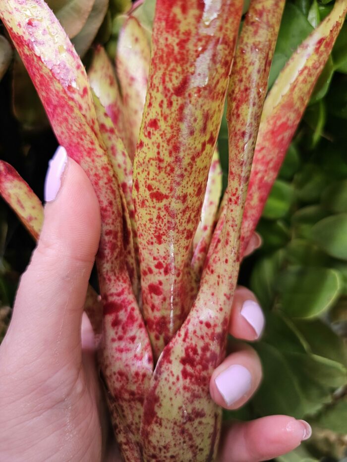 Pour les arroser, il te suffit de les pulvériser au cœur afin d’avoir toujours un peu d’eau dans celui-ci. Tu peux également brumiser les feuilles pour son bien-être et pour faire ressortir les couleurs.