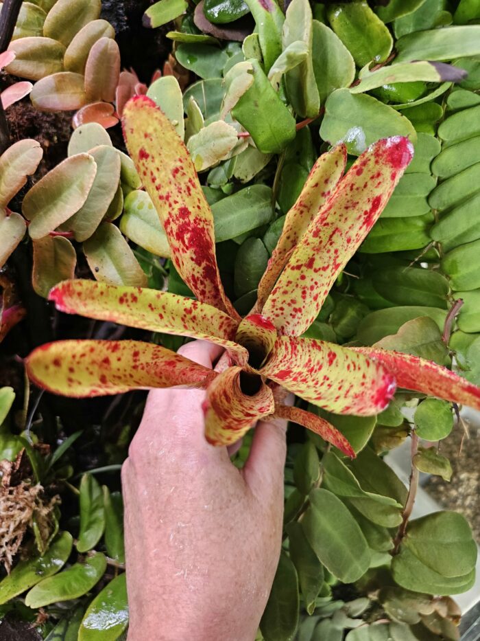 - 💦 Arrosage : Maintenir de l’eau propre dans la rosette centrale et humidifier régulièrement le substrat