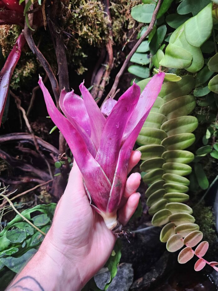 - 💦 Arrosage : Maintenir de l’eau propre dans la rosette centrale et humidifier régulièrement le substrat