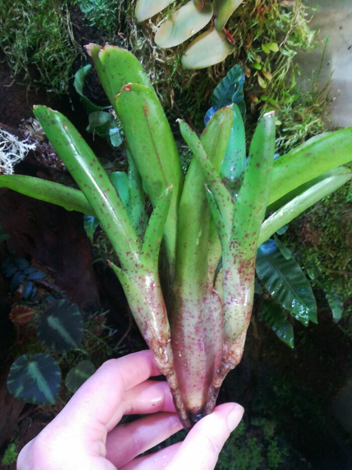 - 💦 Arrosage : Maintenir de l’eau propre dans la rosette centrale et humidifier régulièrement le substrat