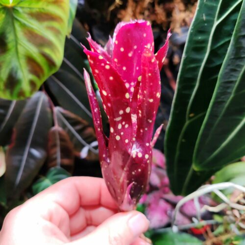 Pour les arroser, il te suffit de les pulvériser au cœur afin d’avoir toujours un peu d’eau dans celui-ci. Tu peux également brumiser les feuilles pour son bien-être et pour faire ressortir les couleurs.