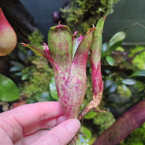 - 💦 Arrosage : Maintenir de l’eau propre dans la rosette centrale et humidifier régulièrement le substrat