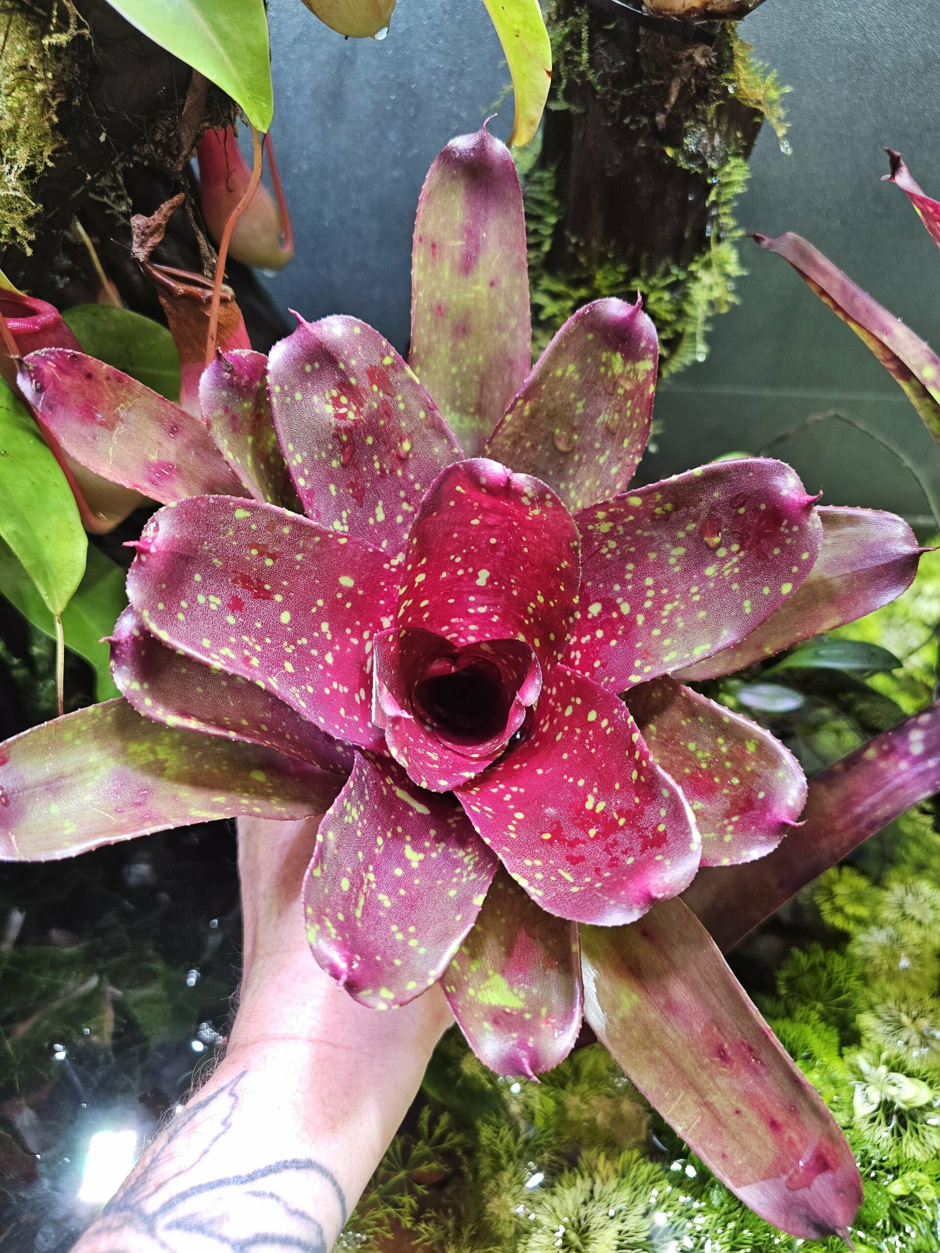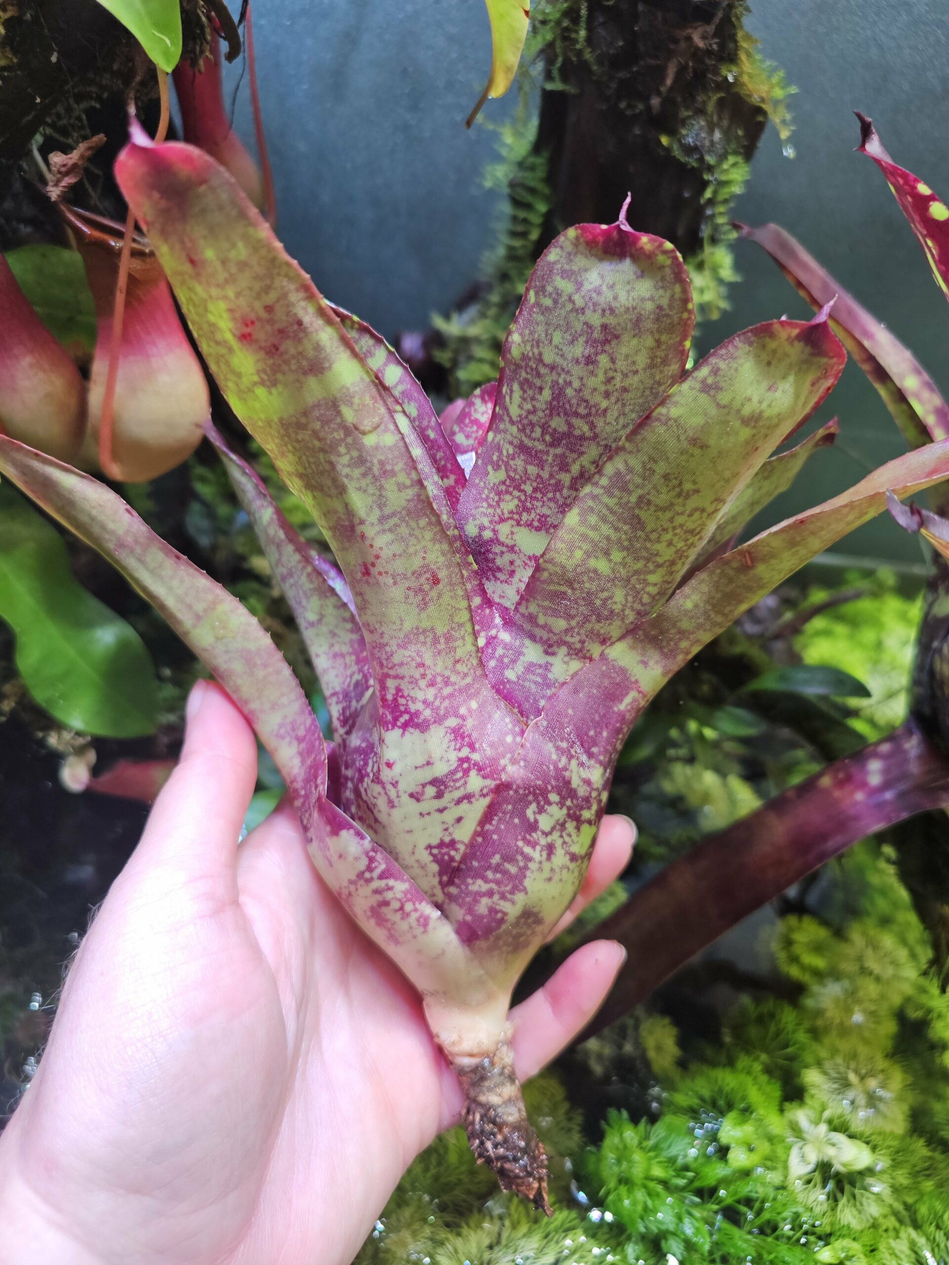 - 💦 Arrosage : Maintenir de l’eau propre dans la rosette centrale et humidifier régulièrement le substrat