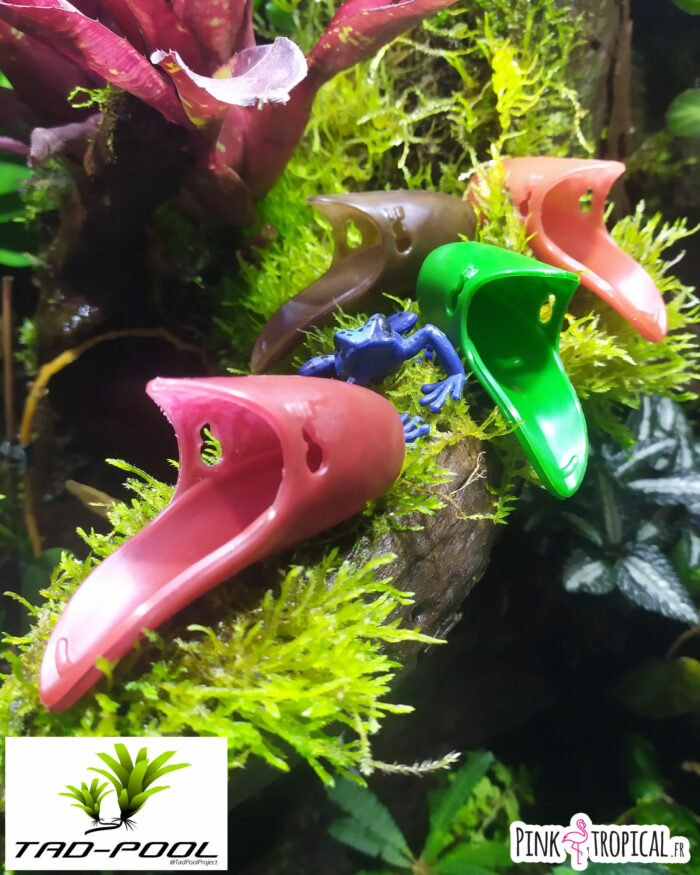 La Tad-Pool à pour but d’imiter le cœur d’une Neoregelia par sa forme et sa couleur, elle est proposées en 4 coloris. A l’aide d’un petit « tiroir », tu peux facilement retirer les œufs afin de les faire grandir en dehors du terrarium et ainsi maximiser les chances de naissances. Tu peux également les laisser dans la Tad-Pool et laisser les grenouilles s’occuper de tout.